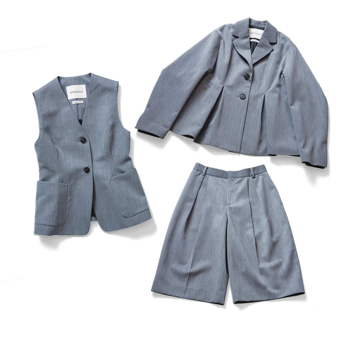 ジャケット ¥88,000ジレ¥66,000 ハーフパンツ¥49,500 (すべてデパリエ/デ パリエ 伊勢丹新宿店)