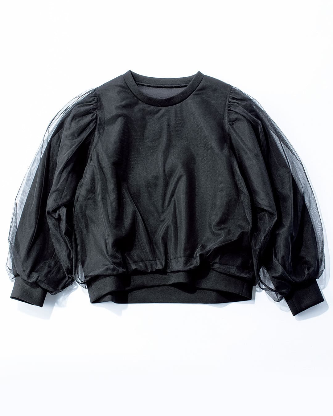 ⑤透け感チュールで大人の「可愛げプルオーバー」
