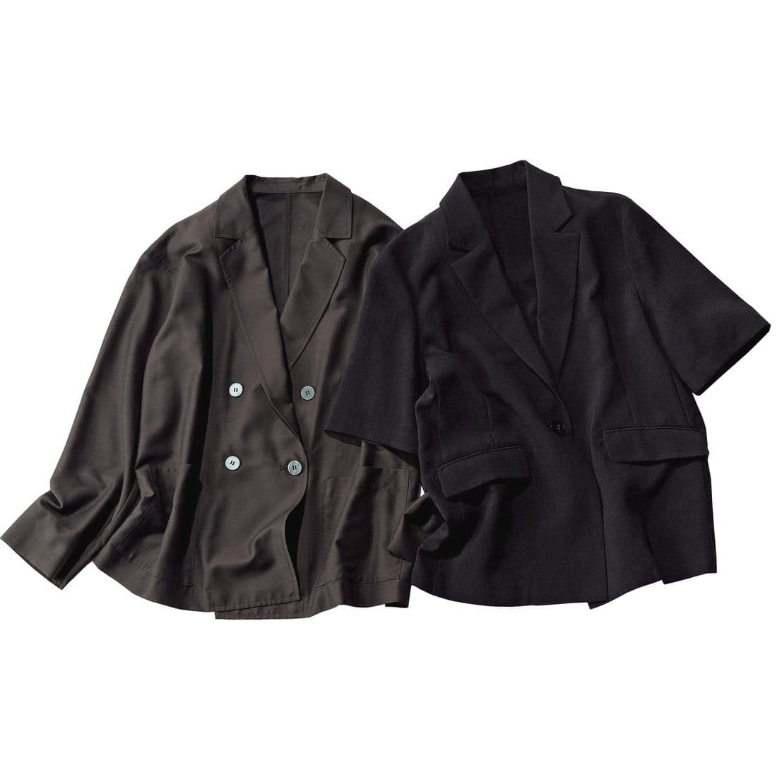 (右)ブラック半袖ジャケット¥6,996(ロペピクニック/ベイジュ)(左)グレーシアジャケット¥7,698(グローブ/ワールド プレスインフォメーション)