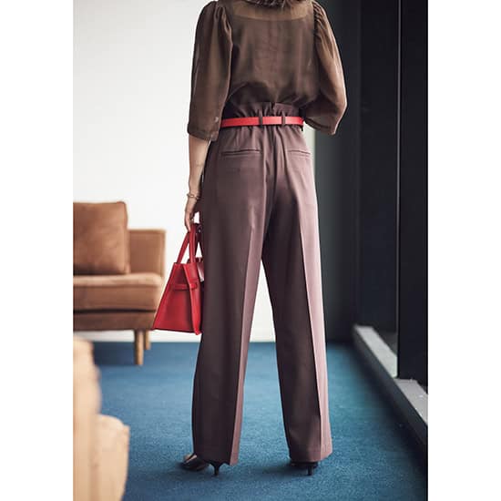 【1枚目】ブラウス¥13,970パンツ¥14,960(ともにDay by Day It’s international) キャミソール¥5,990(アンフィーロ)バッグ ¥31.900(ヴィオラドーロ)パンプス¥33,000(銀座かねまつ/銀座かねまつ6丁目本店)ピアス¥162,800太リング¥253,000リング¥231,000〈モニス〉ブレスレット¥6,330〈エイチアッシュ〉(すべてフォーティーンショールーム)ベルト(スタイリスト私物)【2枚目】ブラウス¥13.970パンツ¥14,960(ともにDay by Day It’s international)バッグ ¥12,100(Cepica/ジオン商事)ネックレス¥46,200〈ミチウィルウェイ〉ピアス ¥39,600〈モニス〉(ともにフォーティーンショールーム)キャミソール(スタイリスト私物)【3枚目】ブラウス¥13,970パンツ¥14,960(ともにDay by Day It’s international)時計¥20,900(マトウ/エイチエムエスウォッチストア 表参道)イヤリング¥6,820(イットアトリエ/フォーティーンショールーム)