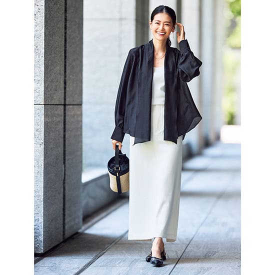 ④ブラウス⇔羽織りの「2WAY透けトップス」で秋まで着回し