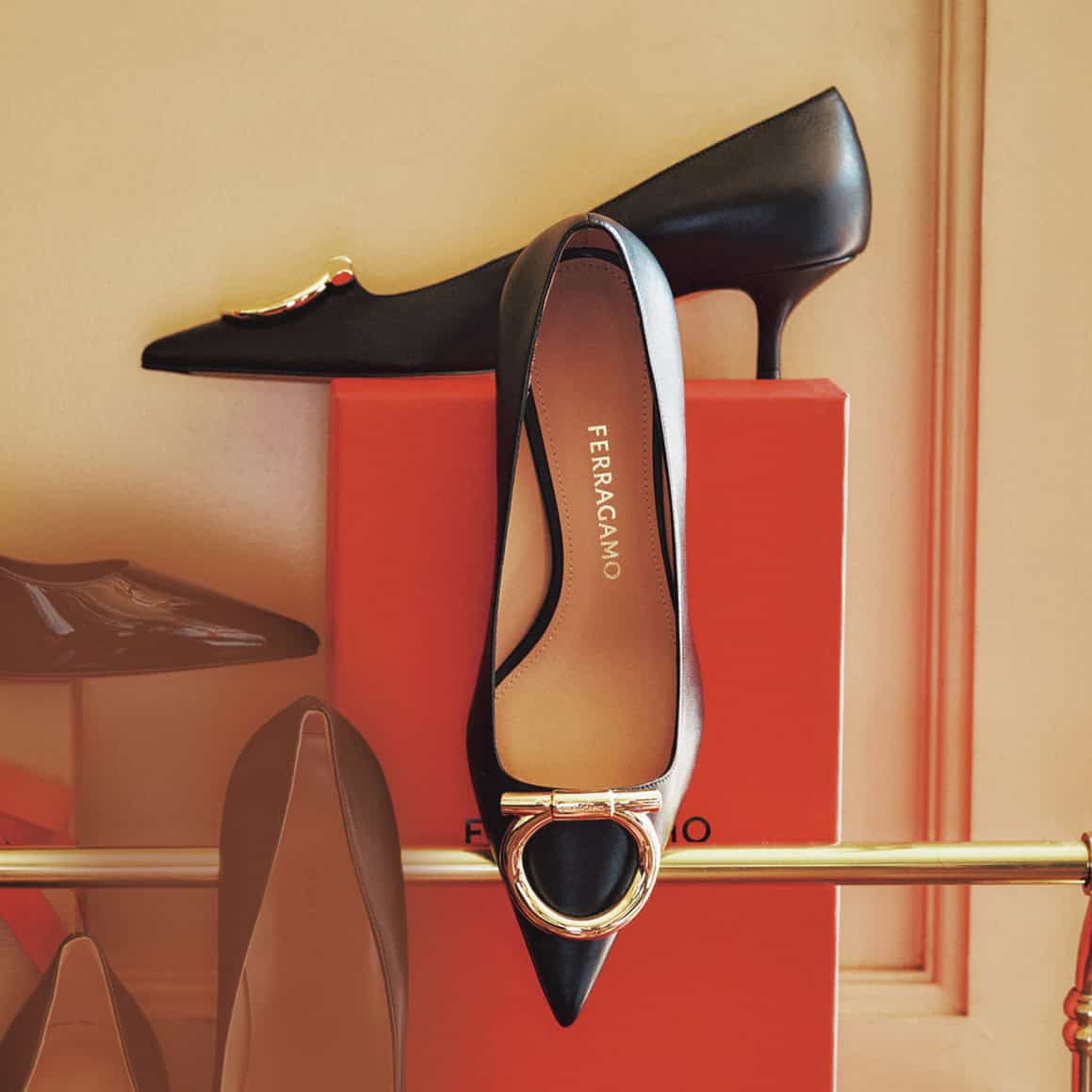 くびれたヒールがエレガントかつモダン。フェラガモの不動のアイコンである、ガンチーニが自信をくれる。