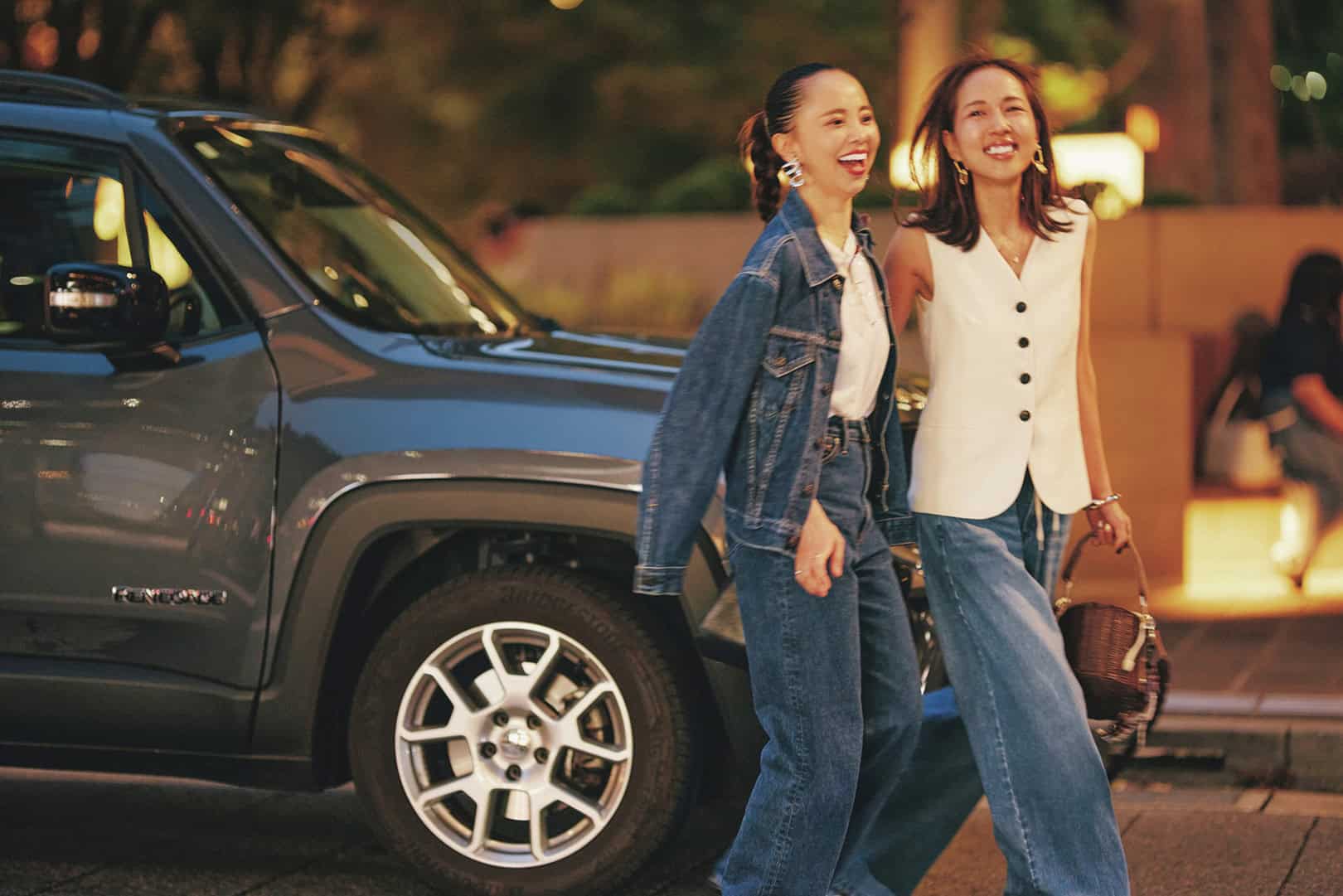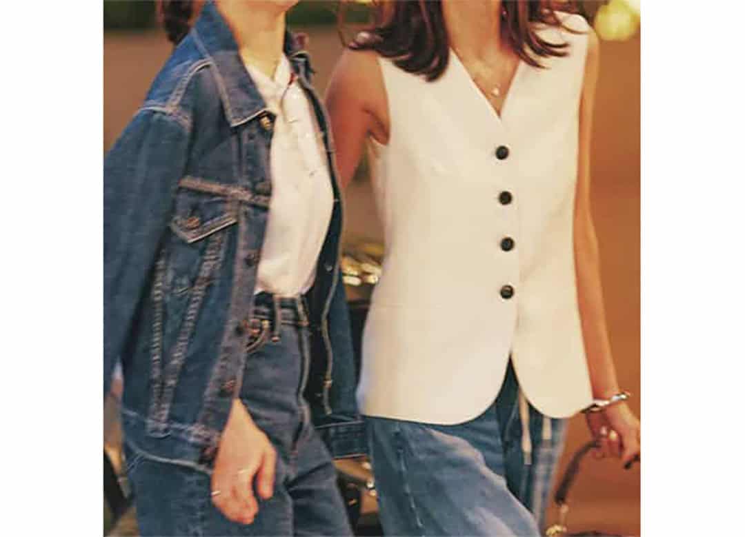夜に映えるトレンドアイテムや、汗ばんだらガンガン洗いたいアイテムは、ファストブランドで探すのが賢い。石田さんはさらっと1枚で着られるベストをH&Mで、猪岡さんはデニムコーデのベースにした白Tをユニクロで。