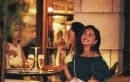 [中越さん]オフショルダーカットソー¥23,100(HER.)パンツ¥20,900(アルページュストーリー)バッグ¥203,500(ヴァレクストラ/ヴァレクストラ ジャパン)ミュール¥272,800(ジミー チュウ)ピアス¥33,000(ブランイリス/ブランイリス トーキョー)ブレスレット¥29,700(ローラ ロンバルディ/八木通商)リング[右手]¥20,900〈mysha〉 リング[左手人さし指]¥22,000〈vv〉(ともにロードス)リング[左手中指・薬指]¥20,900(バルブス/ズットホリック)[友人・左奥]ドット柄ビスチェ¥46,200(ダブルスタンダードクロージング/フィルム)ノースリーブカットソー¥9,350(アルページュストーリー)[友人・右奥]パフスリーブブラウス¥19,500(シーニュ)