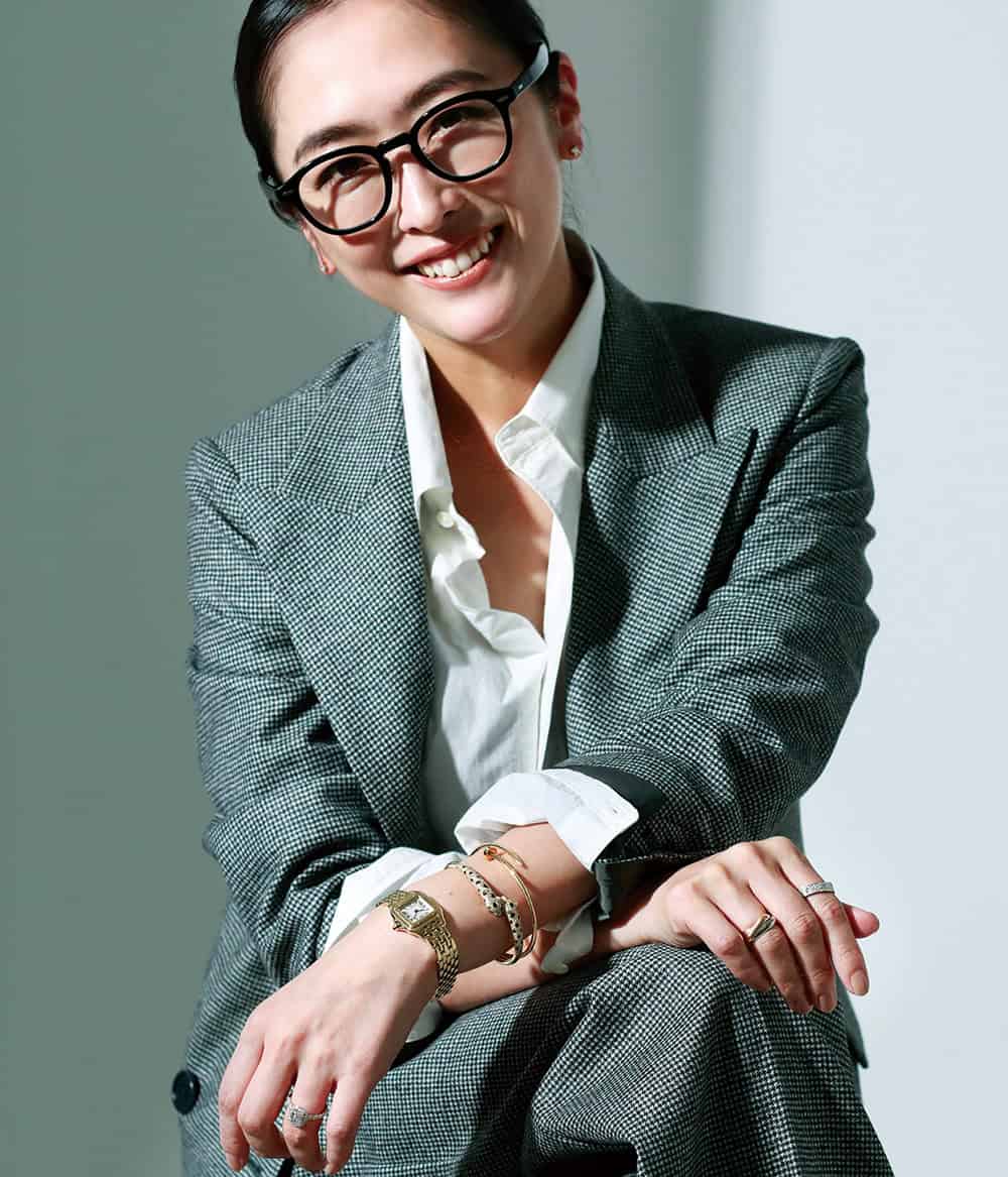 しなやかなブレスレットが華奢な腕にもフィットする憧れのアイコンモデル。ブレスを重ねてより自分らしく。時計「パンテール ドゥ カルティエ」〈18KYG、23㎜×30㎜、クォーツ、18KYGブレスレット〉¥3,894,000 ブレスレット(中央)〈18KYG×オニキス × エメラルド×DIA〉¥9,438,000(右)〈18KYG〉¥599,500左手薬指リング〈プラチナ×DIA〉¥13,200,000(参考価格)右手人差しリング〈18KWG×DIA〉¥1,254,000右手薬指リング〈18KWG×18KYG×18KPG〉¥350,900イヤリング〈18KYG×DIA〉¥947,760(すべてカルティエ/カルティエ カスタマー サービスセンター)ジャケット¥224,400パンツ¥137,500(ともにアスペジ/トヨダトレーディング プレスルーム)シャツ¥26,400(ティッカ)メガネは本人私物/span>