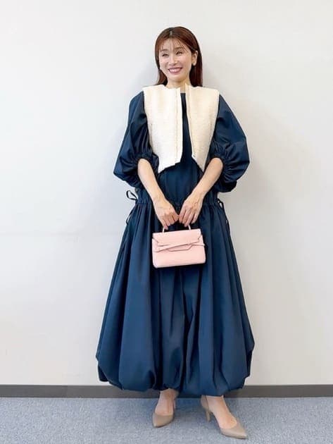 バルーンワンピース¥20,900(シークレット・トロフィー)パール付きバッグ¥13,200パンプス¥28,600(ともにツル バイ マリコ オイカワ)ピアス¥4,830(アビステ)ブレスレット¥5,500(ieLS/ロードス)