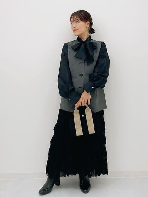 ④きちん見えするからシーンレスに使える「マニッシュジレ」
