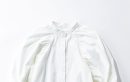ハリのある綿混素材を使用。チュールのフリルが初秋コーデに甘さをプラスします。フロントのボタンで開閉できるので、着脱もスムーズ。メタルのミニボタンも上品で着こなしを高見えしてくれます。