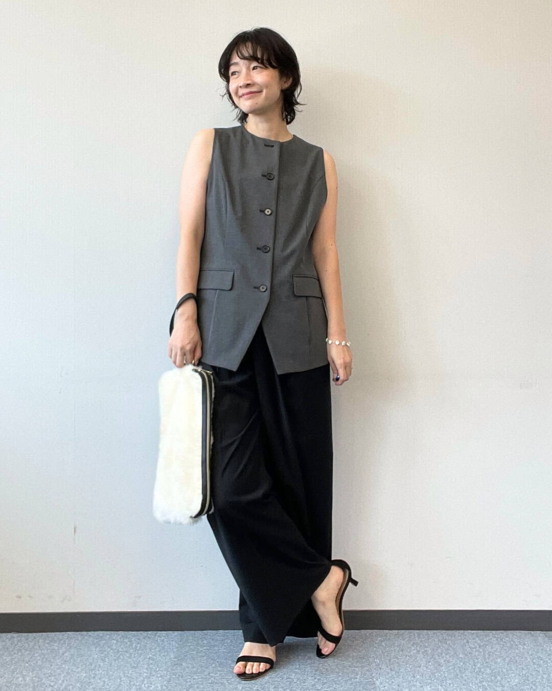 ①かしこまりすぎない「ジレ」できちんとコーデ
