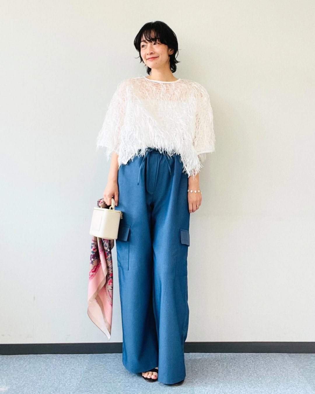 ②写真映えも抜群!「フリンジトップス」で華やかワンツーコーデ♡