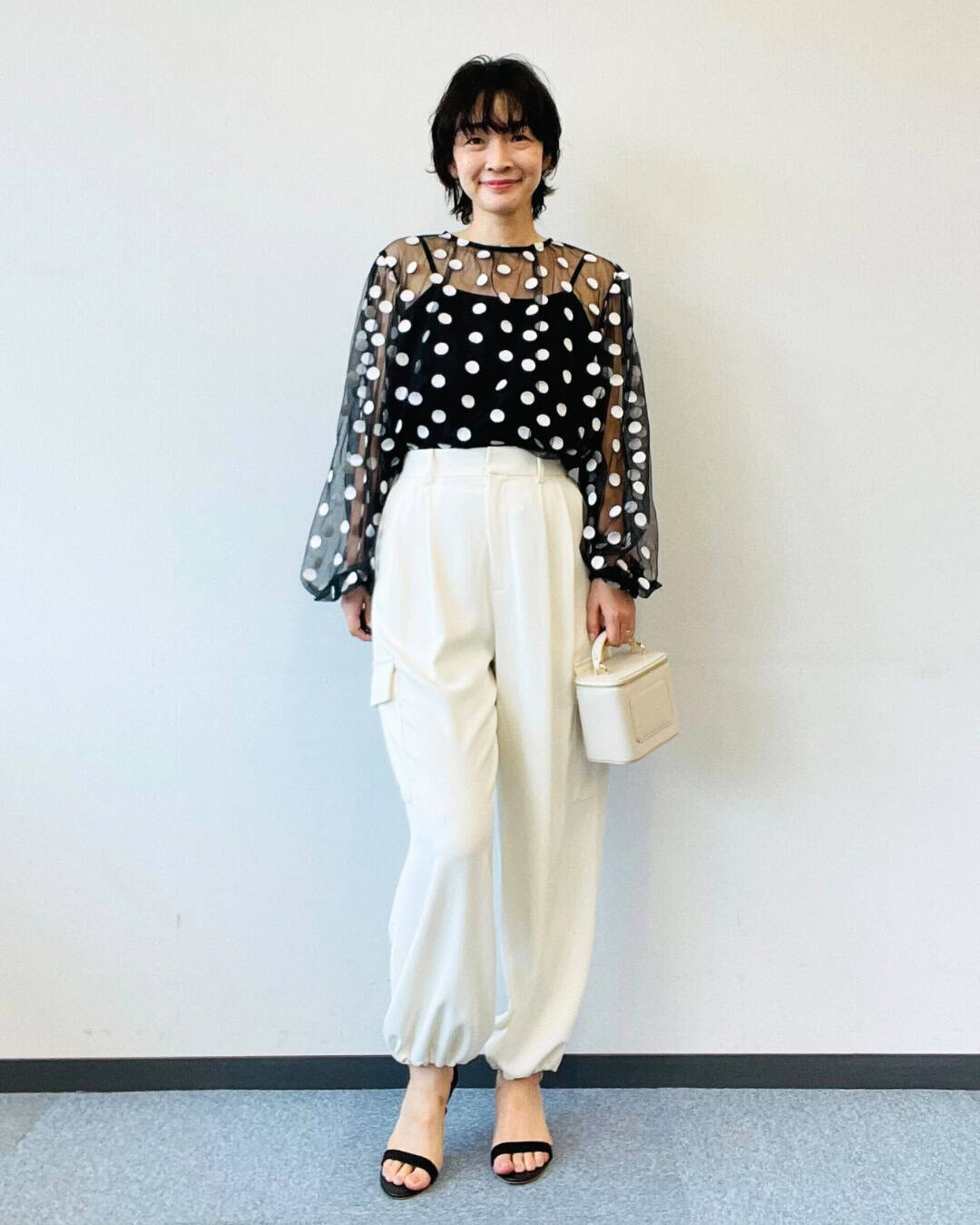 ⑤女子会やママOFFタイムに着たい「ドットシアートップス」