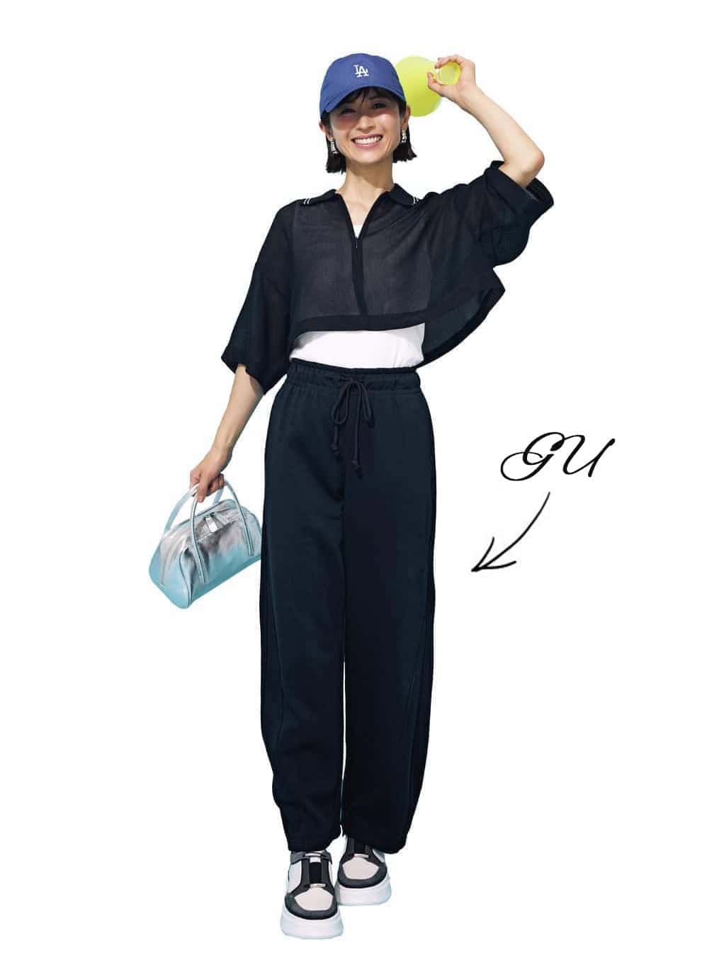 GUのスウェットパンツは、まさかこの価格とは思えない上質感。ほどよい落ち感と立体的なシルエットで、ラフ見えを回避。キャップやシアーシャツを重ねれば、スポーティさと抜け感を両立した旬コーデに整います。