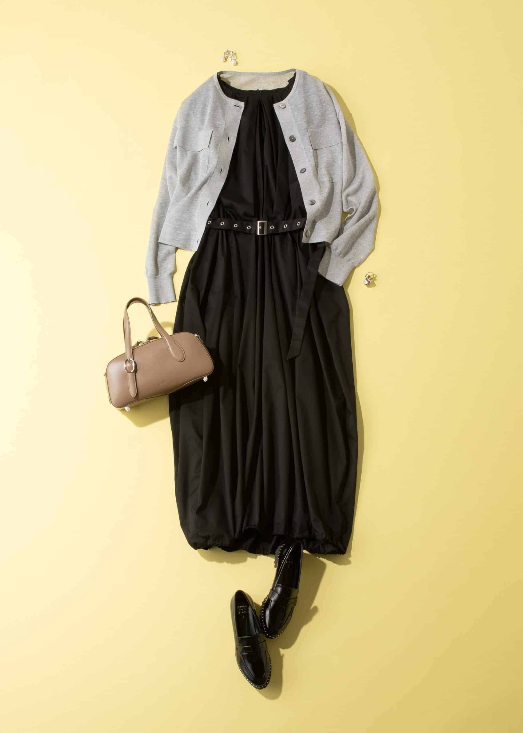 黒をベースにまとめる日は、袖や襟がリブなしで流れるようなシアーブルゾンを羽織るだけで即モードな雰囲気に。真っ黒同士だと重たくなりがちな装いに、軽やかな抜けを与えて高見えを叶えます。この時期の羽織りとして実用もトレンドも兼ね揃えた万能アイテムで、プライス以上の活躍をしてくれること間違いなし!