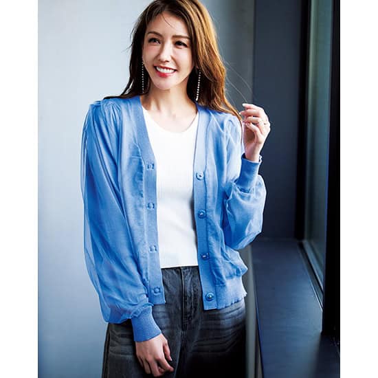 ②Tシャツに羽織っても、1枚でもサマになる「チュールカーディガン」