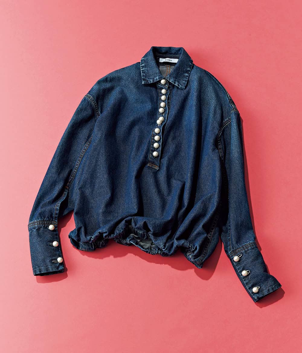 大きなパール使いや、裾を絞ったフォルム、細く長いカフス、と可愛さをぎゅっと詰め込んだデザイン。ブラウス(チノ/モールド)