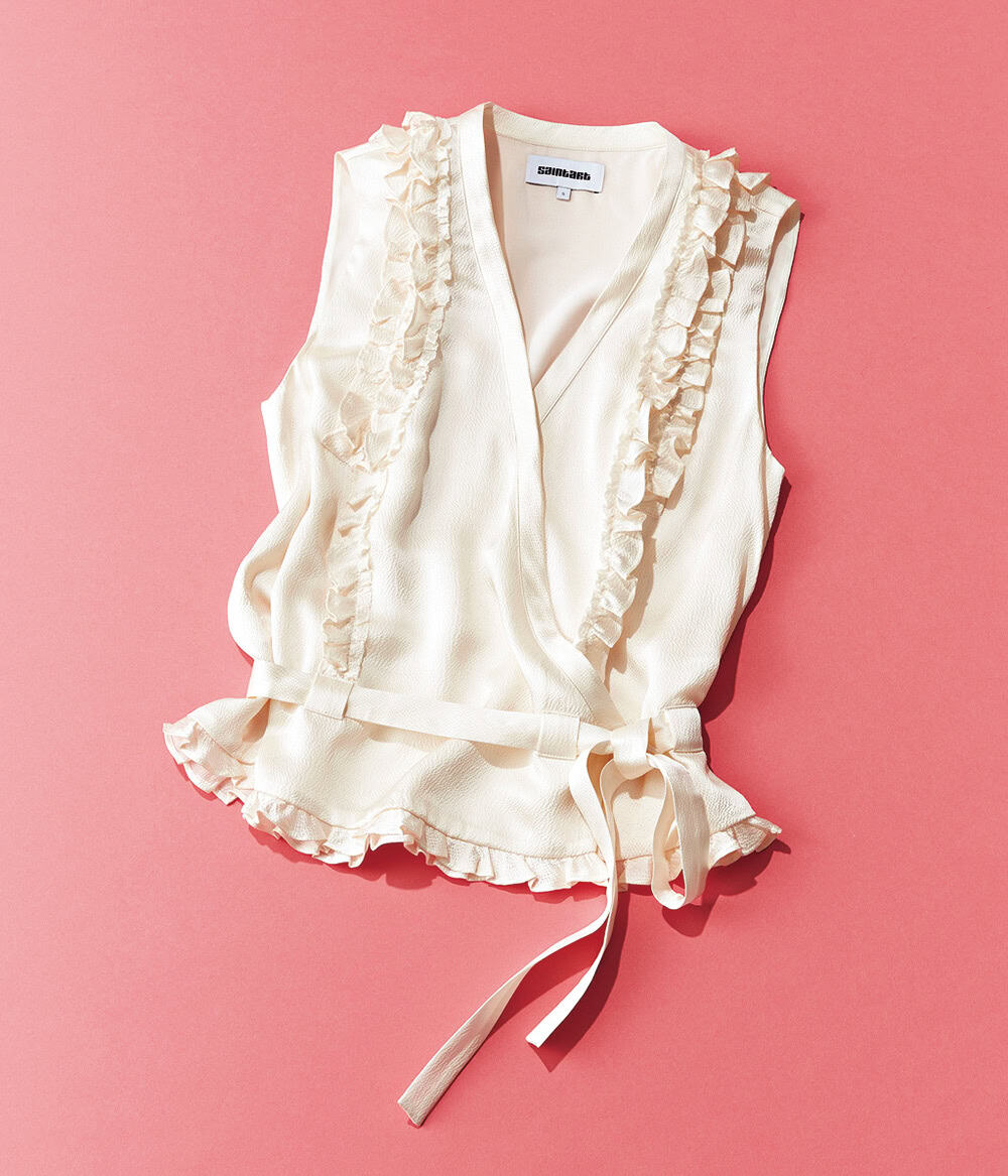 胸元から背中までたっぷり施されたフリルがゴージャス。ちりめん風な素材感もリッチです。ブラウス(セントアート/カオス表参道)