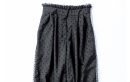 手に取りやすい黒の美シルエットパンツの上にドットのチュール素材を重ね、大人もトキメク甘ニッシュなパンツに仕上げました。ウエストはタック仕様にし、インしたときもスタイリングが単調にならないように配慮しました。後ろウエストはゴムでポケット付きはシートロの定番です。