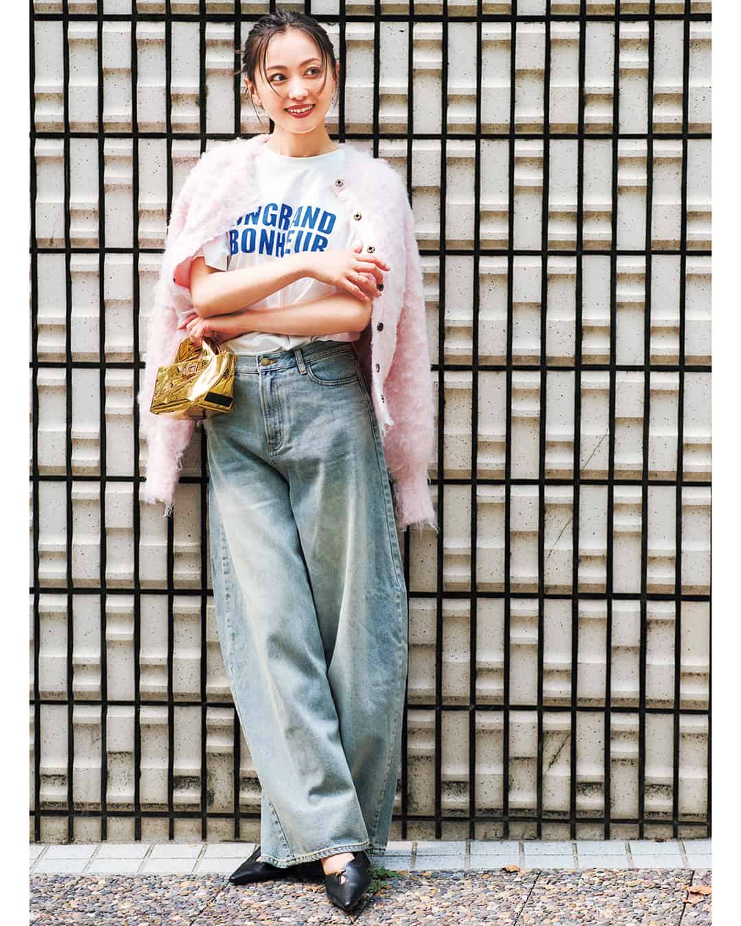カーディガン¥18,700パンツ¥17,600(ともにAKTE)カットソー¥9,900(アルページュストーリー)バッグ¥9,900(エロイーズ/ジャック・オブ・オール・トレーズ プレスルーム)シューズ¥20,900(ル タロン グリーズ/ル タロン グリーズ ルミネ新宿店)ピアス¥167,200(マリハ)リング¥45,100(ココシュニック)
