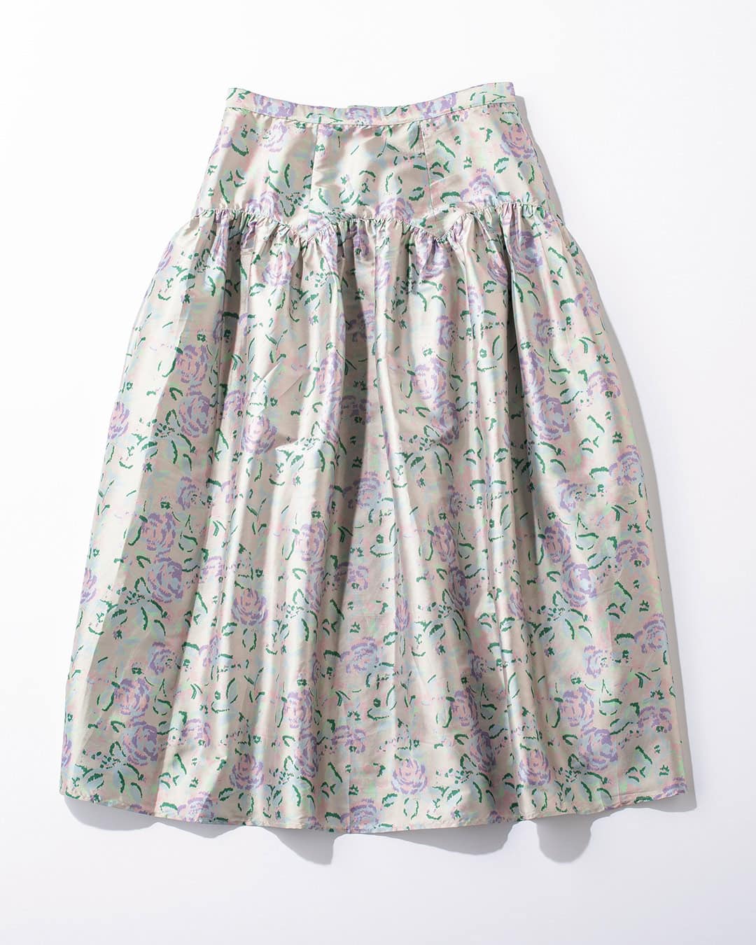 艶のあるテキスタイルで仕立てた、フラワープリントのボリュームスカート。ウエスト回りはボリュームを抑えているので、トップスとのバランスがとりやすい。