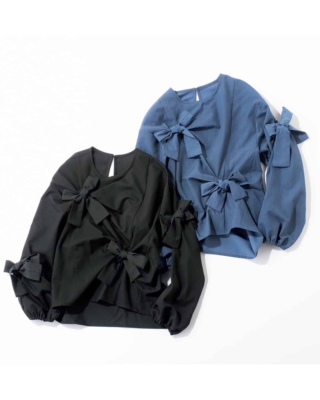 ⑩ちりばめられたリボンが華やかな大人の「甘ブラウス」