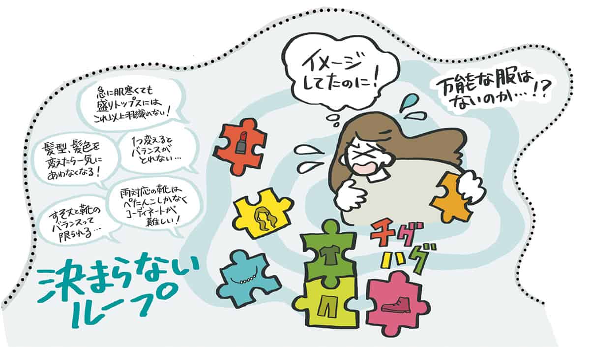 オシャレが大好きだからこそ、あらゆる条件をクリアする 100点コーデを目指して迷いの沼にハマってしまうもの。 そんなあるあるお悩みをSTORYライター5人で大討論。そのモヤモヤをビジュアル化してもらったら、問題が見えてきた!