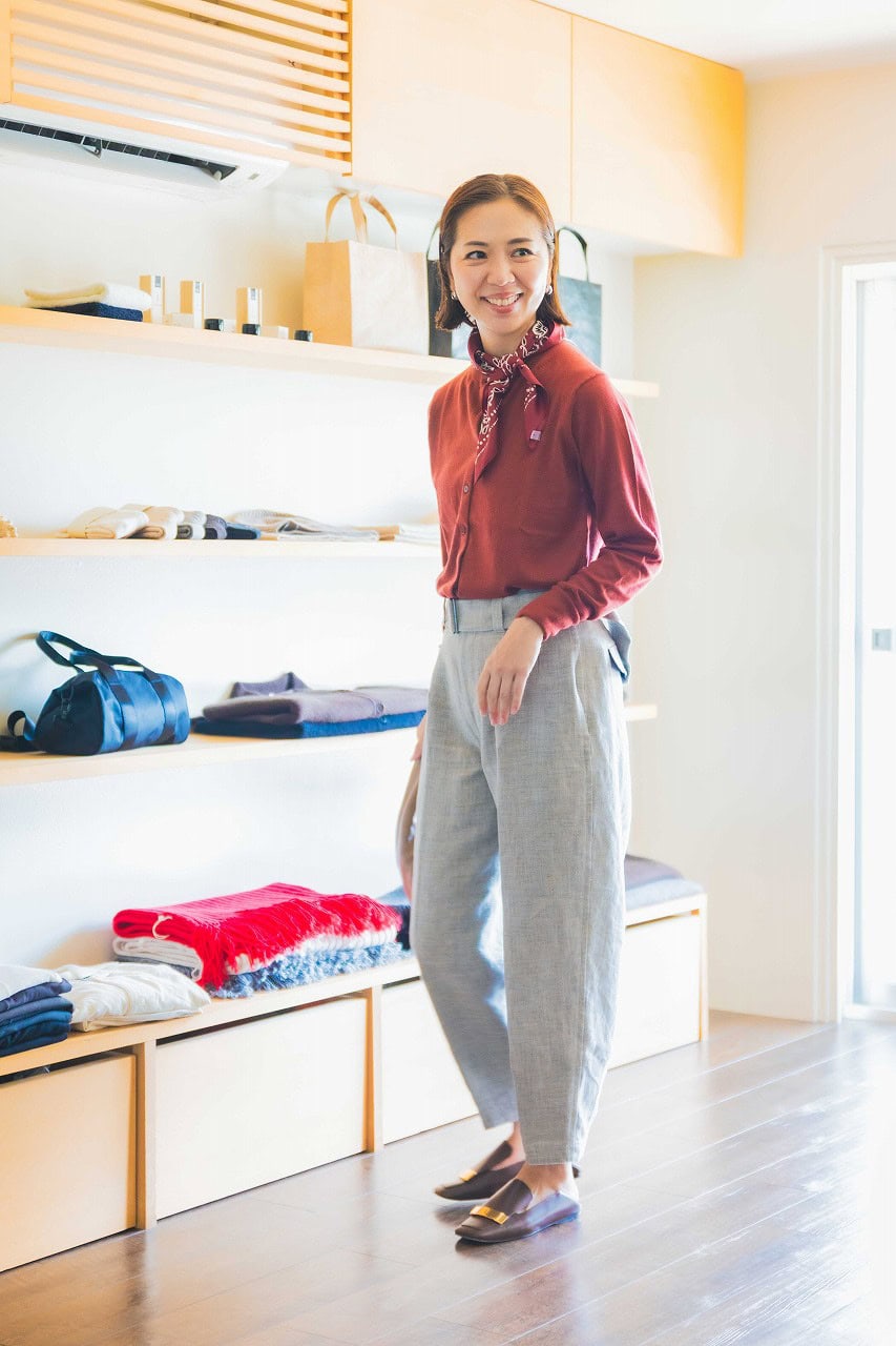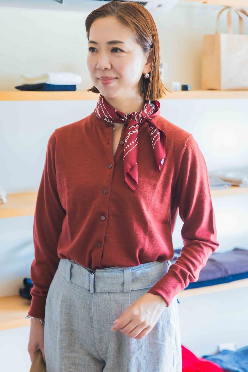 【クールコンサバ派】石澤扶美恵が選んだカーディガンは〈シーズンムードを高めるダークオレンジ〉