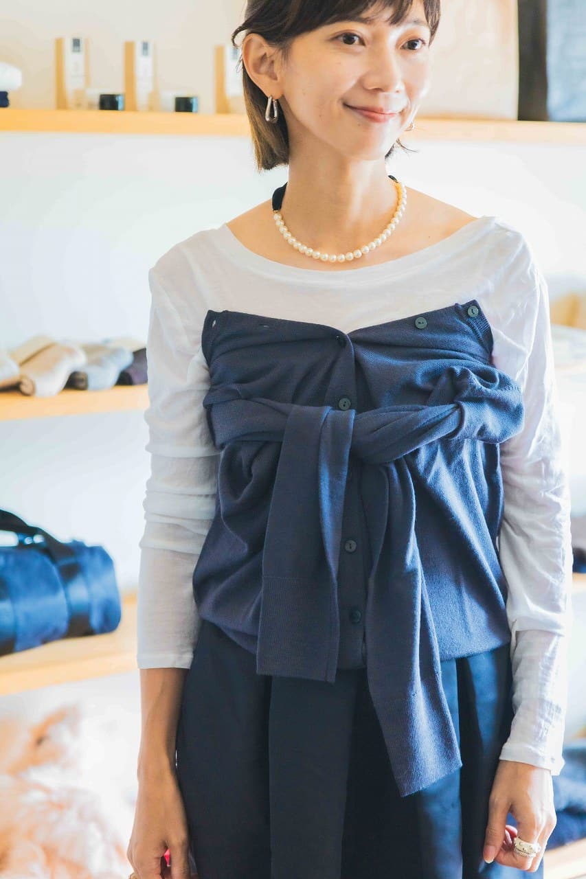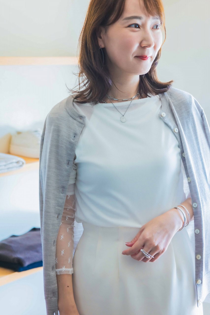 【甘エレガント派】能美黎子が選んだカーディガンは〈親しみやすいオートミール〉