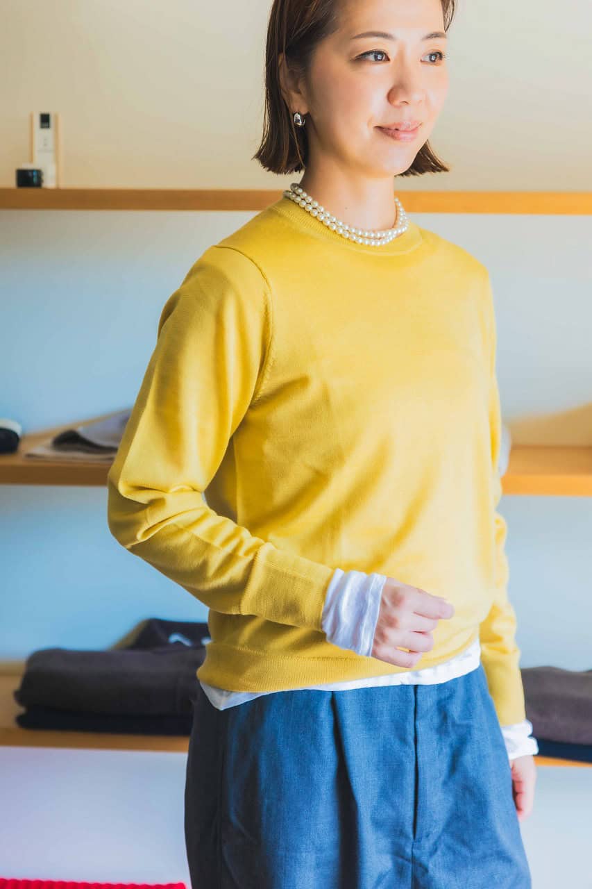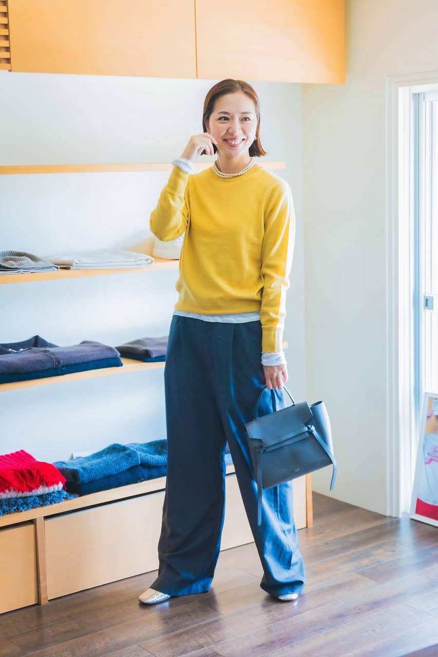 【クールコンサバ派】石澤扶美恵が選んだセーターは〈華やかに映えるスモーキーイエロー〉