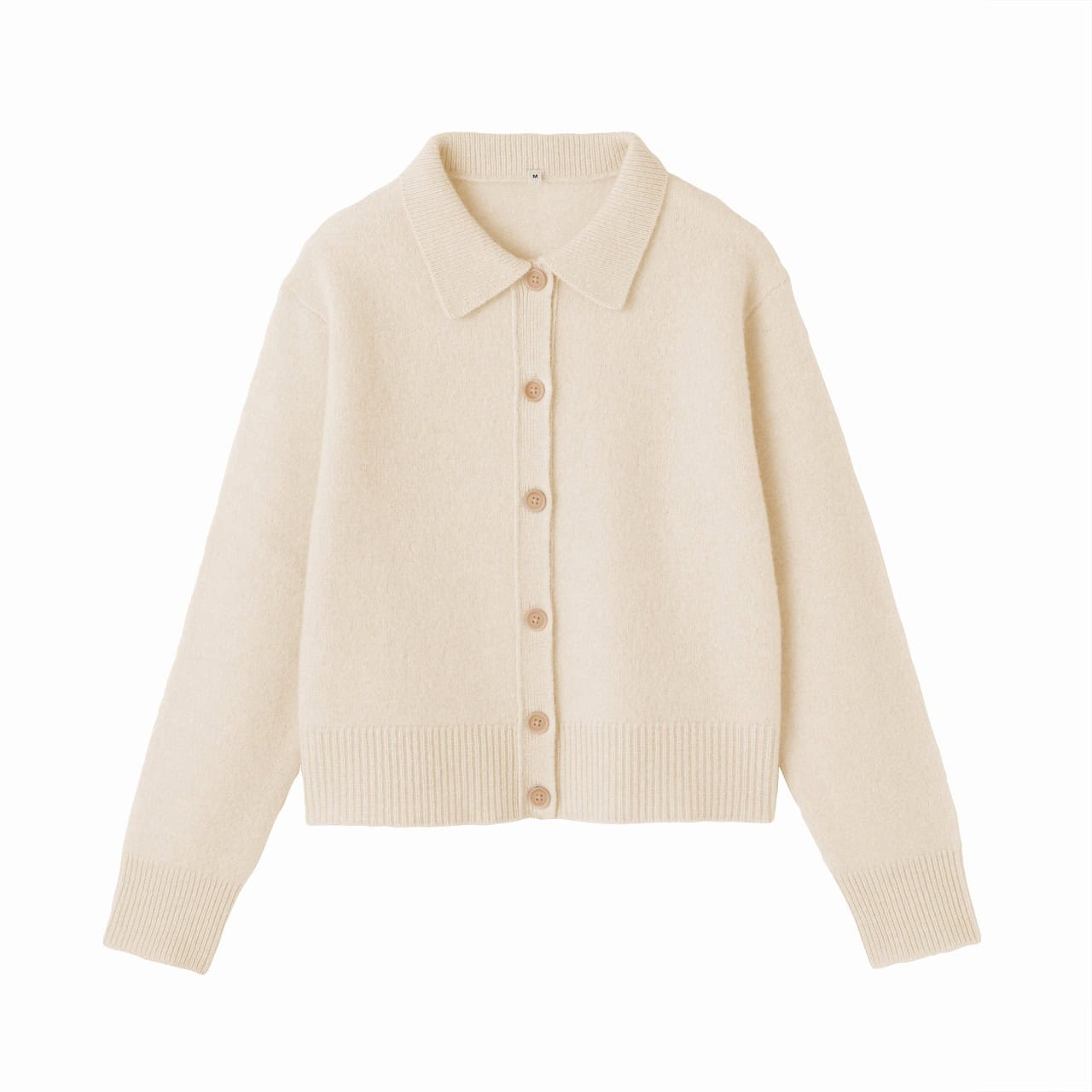 婦人 ヤク混襟付きカーディガン〈ライトベージュ〉¥9,990