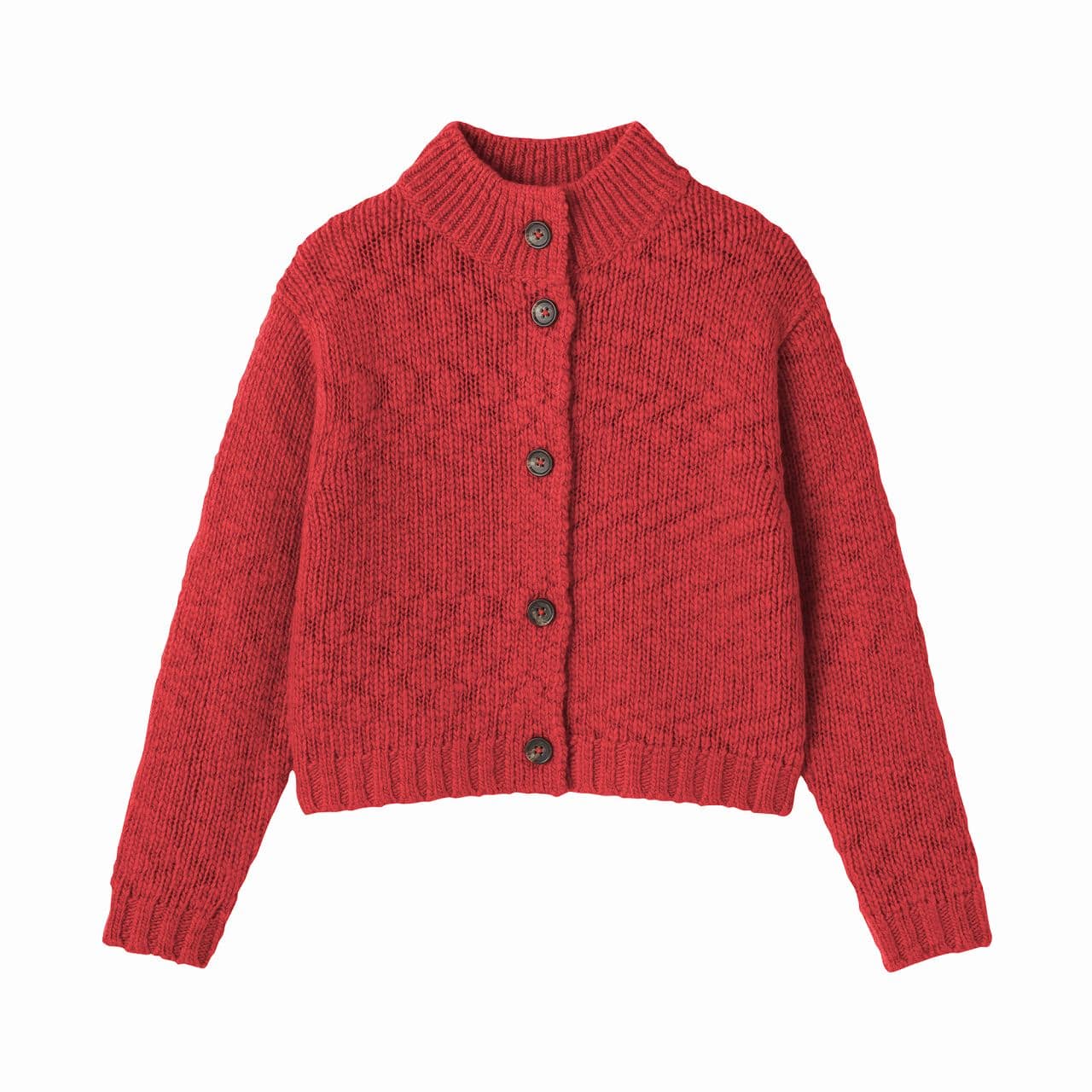 婦人 メリノウールローゲージショートカーディガン〈赤〉¥14,900