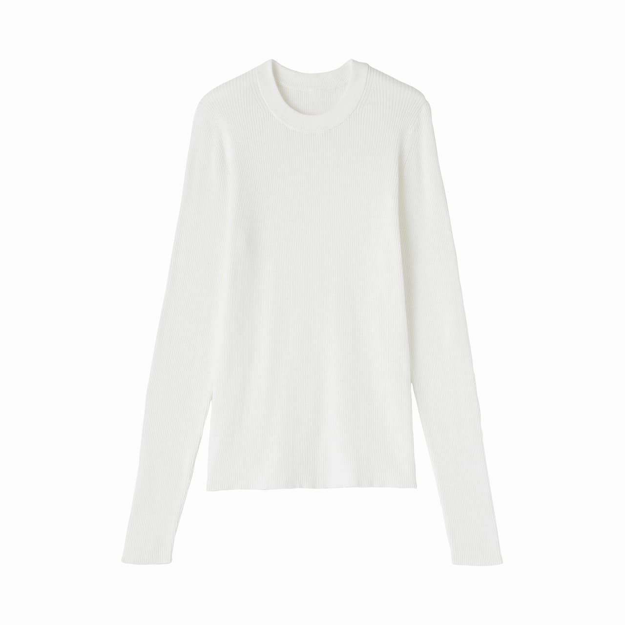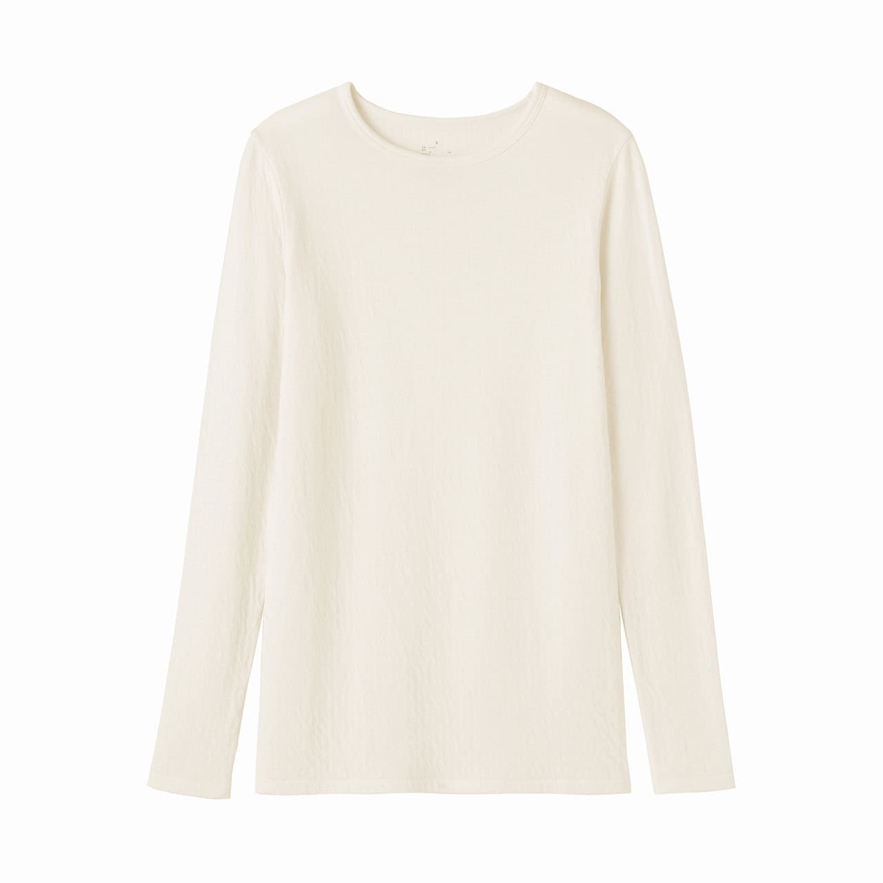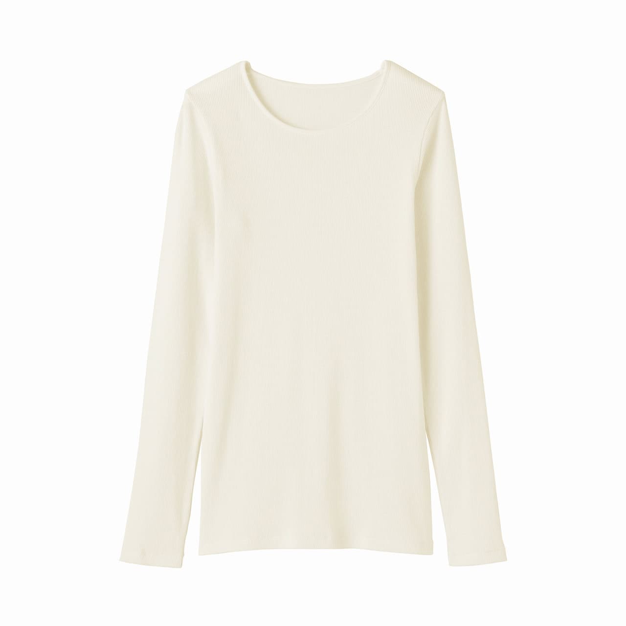 婦人 コットンカシミヤリブクルーネックTシャツ〈オフ白〉¥4,990