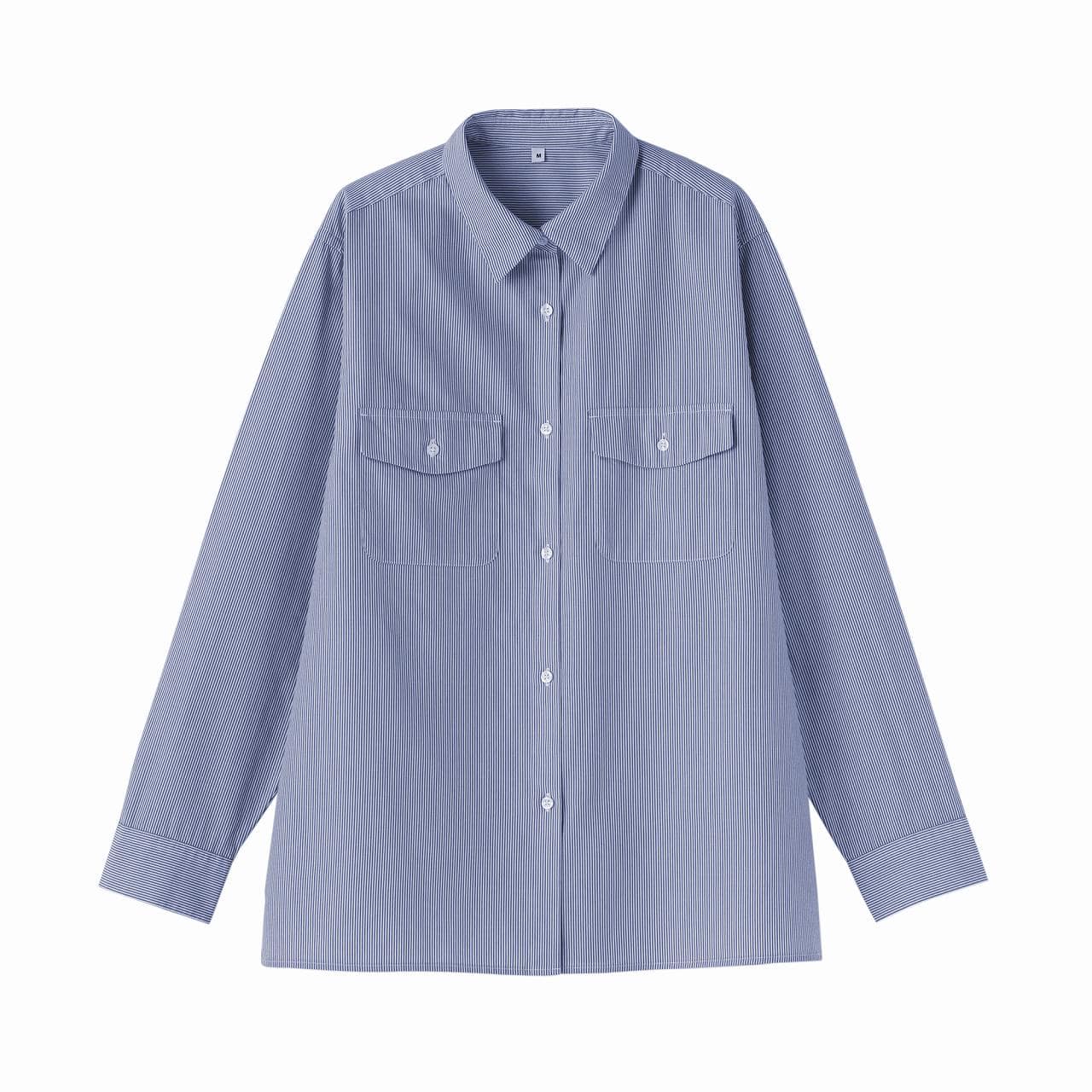 婦人 ポプリンレギュラーカラーシャツ〈ブルーストライプ〉¥5,990
