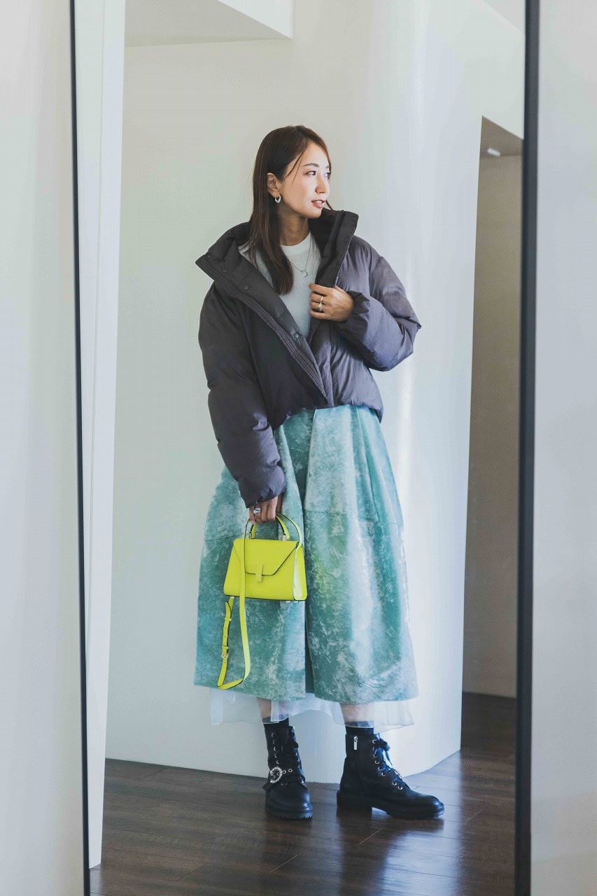 ショート丈ダウン×ボリュームスカートでコーデにメリハリを