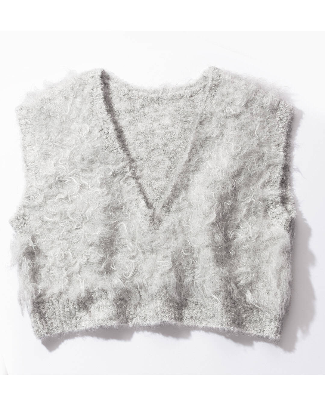 起毛加工をしたふわふわとした素材感が可愛いニットベストは今年らしさのあるショート丈なので、ボトムスとコーディネートしたときに脚長に見せてくれます。深めに開いたVネックもレディなデザイン。Tシャツに、ロンTに、コートのインナーに…と着回しが楽しくなるアイテムです。