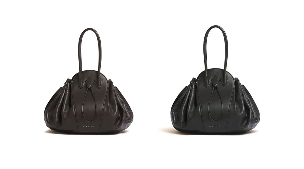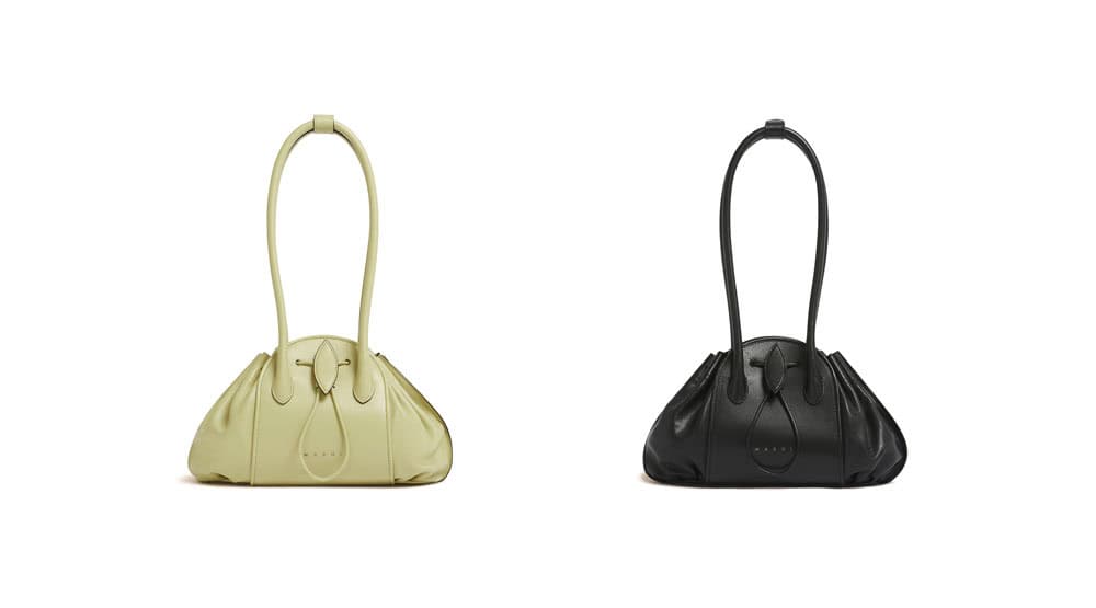 新作バッグ「TULIPEA」は、マルニの花々への情熱を体現。永遠の愛と自然の優美を象徴するチューリップを着想源に、彫刻的に昇華されたデザインは実用性も兼ね備えます。なめらかなバッファローレザーやベルベットのようなスエードレザーを使用し、まるでチューリップのつぼみが優しく開くような構築的なシルエットと有機的な柔らかさが特徴です。スモールバッグとラージバッグには取り外し可能なショルダーストラップが付属しているので、トップハンドル、肩掛け、クロスボディなど、さまざまなスタイルが楽しめます。