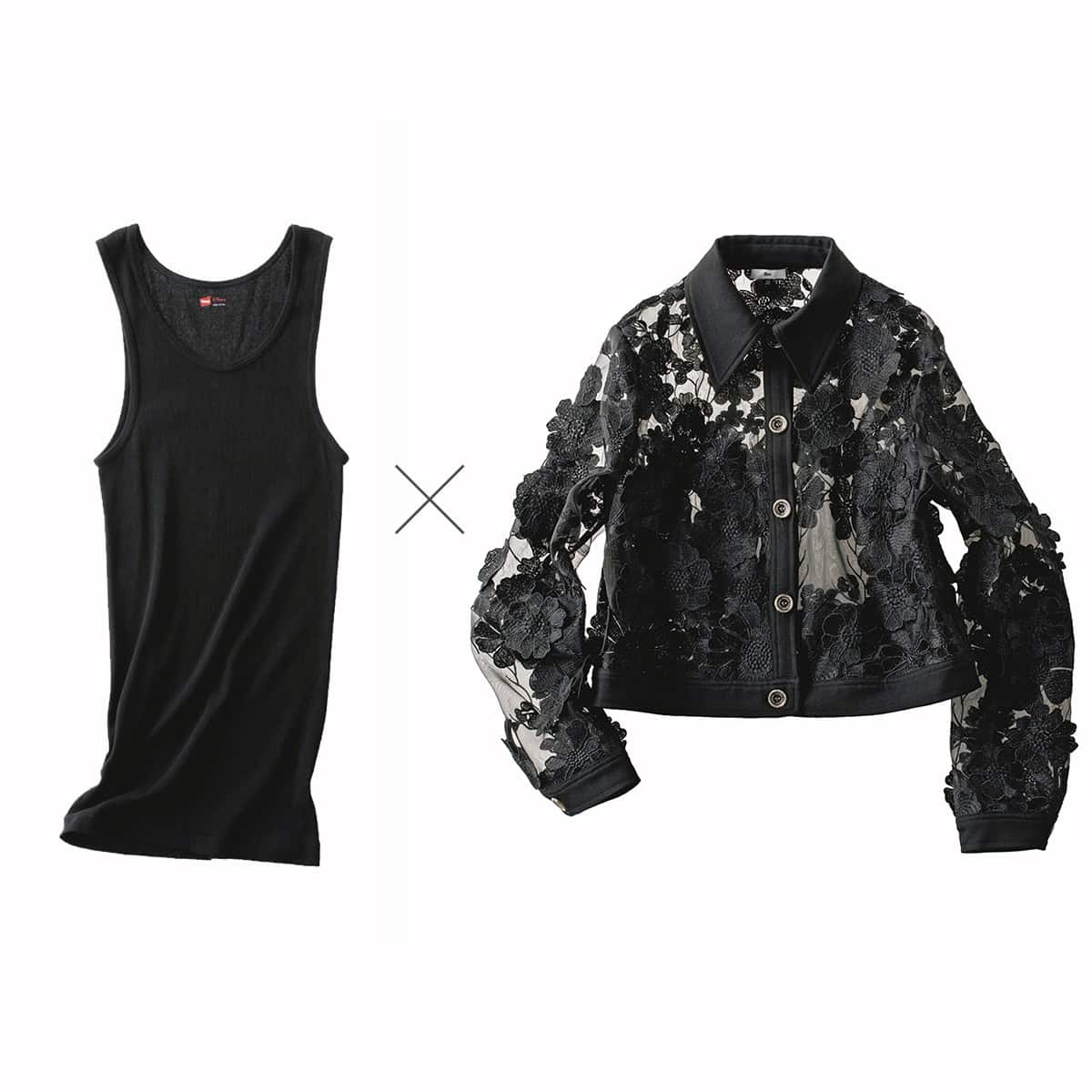 ②「シアーシャツ」×「首詰まりタンクトップ」