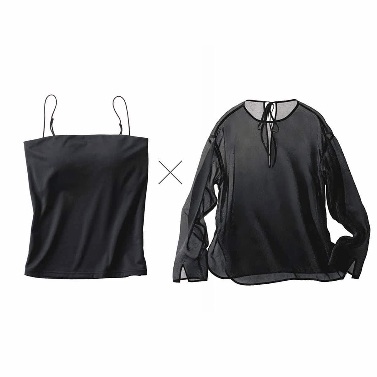 多スクな私たちの朝は決断の連続。せめて自分の身支度は軽やかにこなしたいもの。そんな時にはコーデの色を「ほぼクロ」に固定するのがオススメ! 流行りのシアーアイテムはインナー合わせが悩みどころですが、一対一対応のルールを頭に入れておけば大丈夫。お手本のタッグ3選をご紹介します。