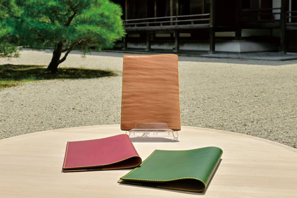 レザーグッズは日本の技術が詰まった「柿渋染め」と「ヤマト」レザーを採用。日本伝統の染色技法を用いた「柿渋染め」は“太陽の染め”と称され、植物由来成分のみを使用。熟練した職人が一枚一枚を手作業によって塗り重ね、レザーに木目のような表情を映し出しています。ひとつひとつ違った表情を持ち、経年変化とともに深く色が変化するのを楽しむことができます。