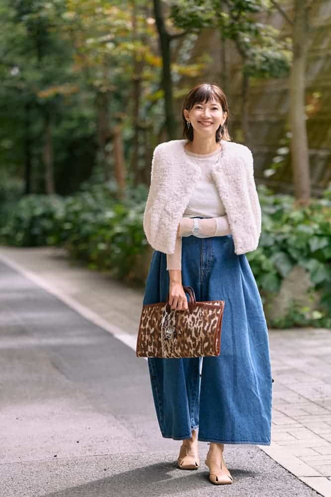 ★ レオパード柄バッグを主役に、デニムでバランスをとるのが正解◎