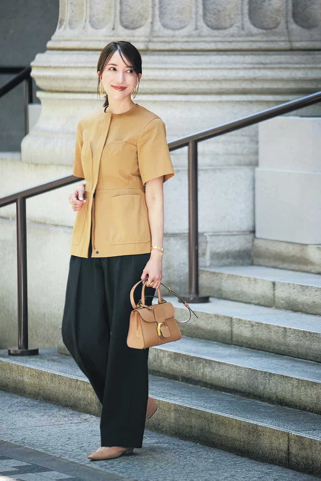 JACKET/Max Mara PANTS/THE RERACS BAG/DELVAUX SHOES/BOTTEGA VENETA EARRINGS/Tiffany&Co. RING/CHIEKO+, J_Products WATCH/Cartier BRACELET/Tiffany&Co.