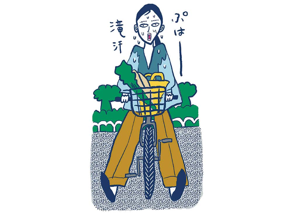 4. 自転車爆漕ぎしたら汗だくでもうサイアク!