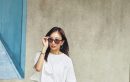 「晩秋は寒暖差、湿度で肌バランスが崩れベースメークがのらないなど肌トラブルに崩れ悩む人も多いはず。顔面積をかなり隠せる太めの黒ぶちメガネと重めな秋色リップでカバーして、くすみも回避」