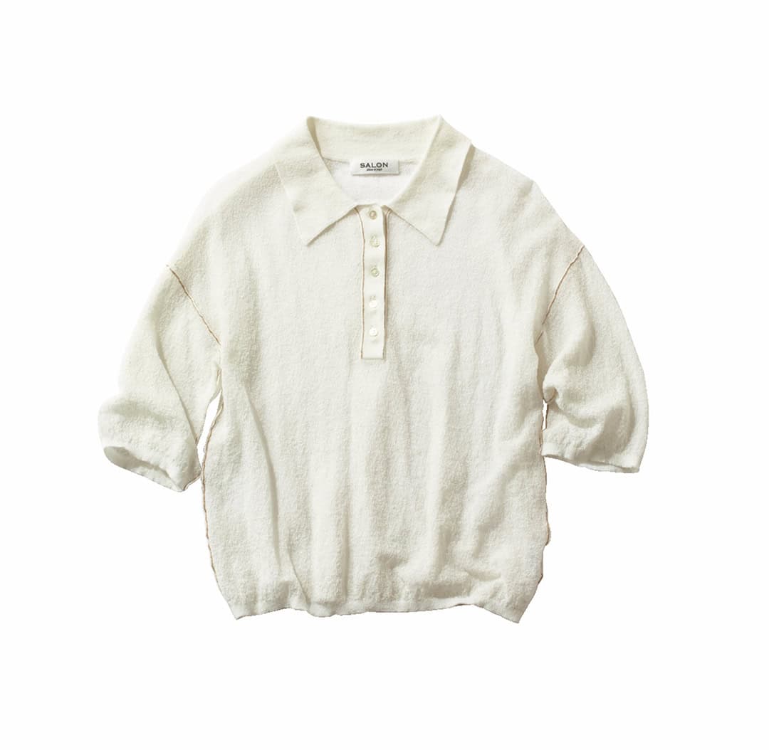 残暑の季節もサラッと着こなせるシアー素材。ボトムスも選ばない丈感で使い勝手抜群。ニットポロ¥17,600(サロン アダム エ ロぺ)