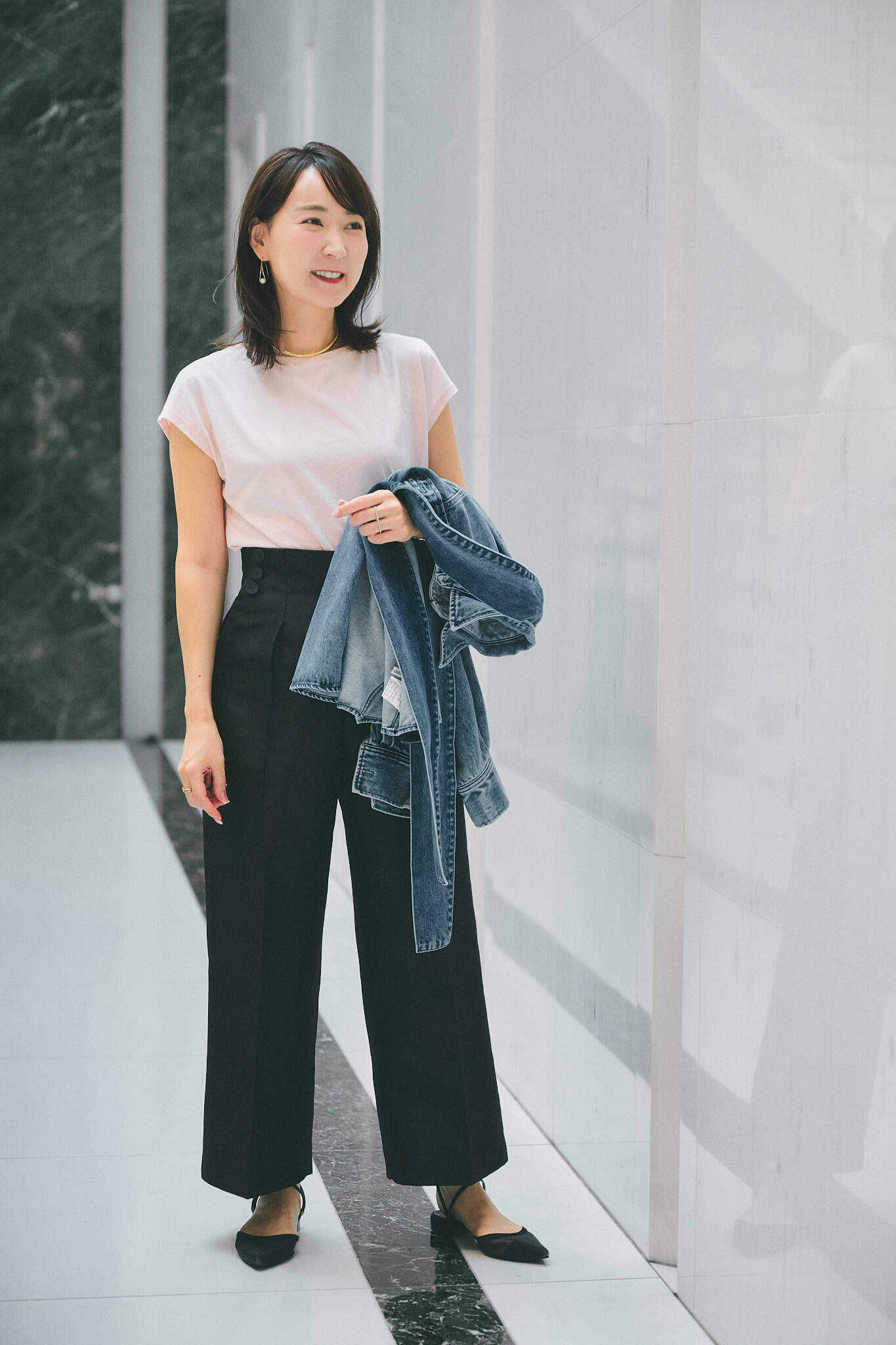 Tシャツ(無印良品)パンツ(セルフォード)デニムジャケット(ウィム ガゼット) サンダル (ル タロン)/すべて本人私物