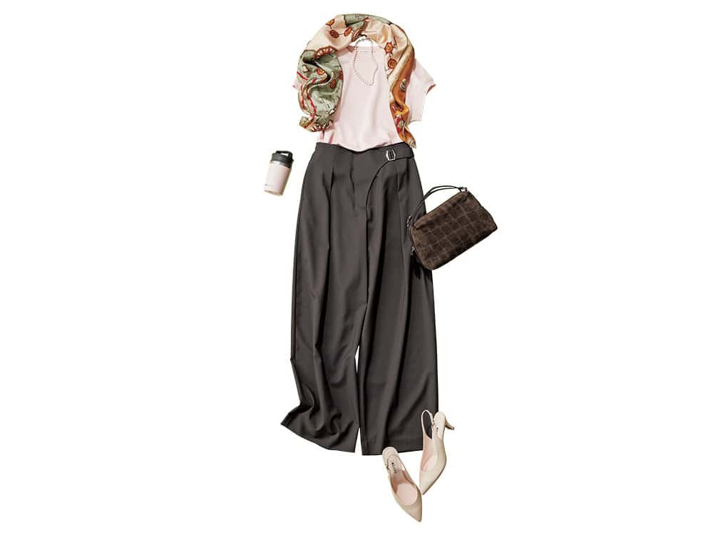 (参考コーデ1)ストール¥39,600(ファリエロ サルティ/八木通商)ジレ¥33,990(イウエン マトフ/ユナイテッドアローズ 渋谷スクランブルスクエア店)パンツ¥22,000(カデュネ)バッグ¥11,900(CHARLES & KEITH/CHARLES & KEITH JAPAN)パンプス¥71,500(ネブローニ)ピアス¥11,000(YArKA/ロードス)(参考コーデ2)スカーフ¥39,600(アソース メレ/アイネックス)ワンピース¥36,960(エイチ ビューティー&ユース)バッグ¥121,000(サルチェ/フラッパーズ)パンプス¥17,600(ダイアナ/ダイアナ 銀座本店)ネックレス¥121,000(ブランイリス/ブランイリス トーキョー)(参考コーデ3)スカーフ¥22,000(マニプリ)カットソー¥13,200(ドレステリア/ドレステリア 渋谷スクランブルスクエア店)パンツ¥31,900(エイチ ビューティー&ユース)バッグ¥47,300(ジャンニ キアリーニ/ジャンニ キアリーニ 銀座店)パンプス¥17,600(ダイアナ/ダイアナ 銀座本店)ネックレス¥22,050(アビステ)