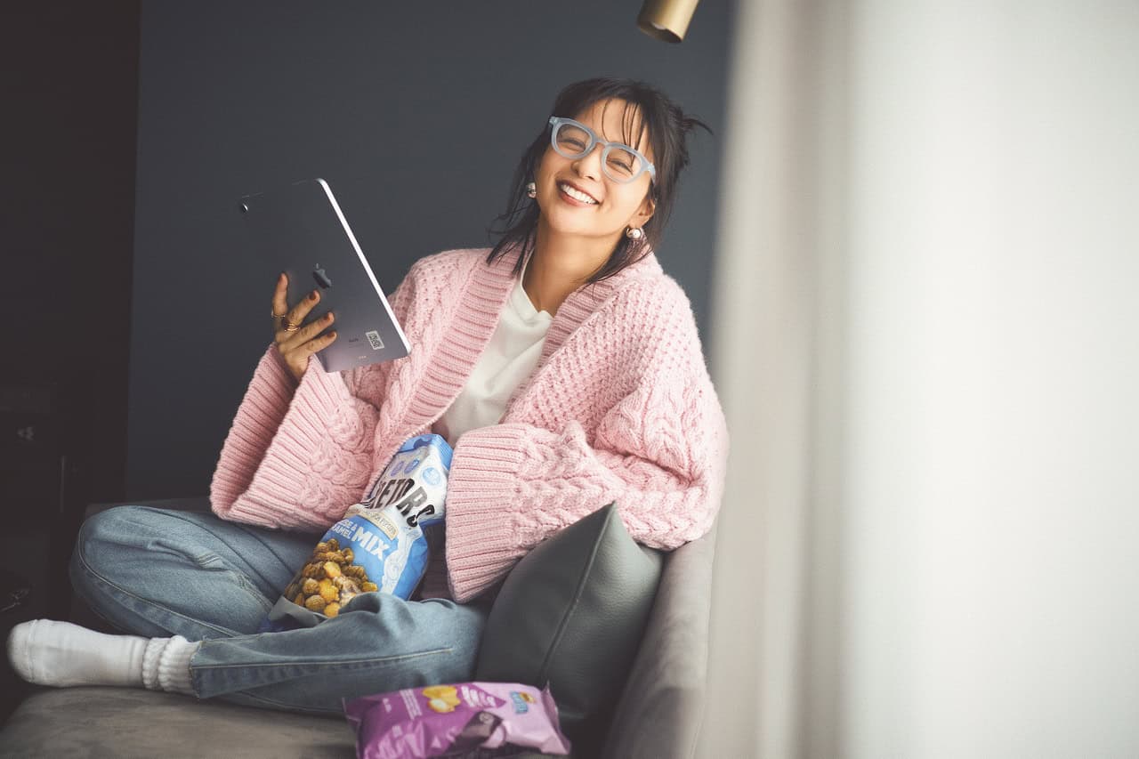 ツイードブルゾン¥49,400(23 区/オンワード樫山)ブラウス¥31,900(サクラ/インターリブ)スカート¥24,970(イウエン マトフ/ユナイテッドアローズ 渋谷スクランブルスクエア店)バッグ¥165,000 チャーム¥42,900(ともにJ&M デヴィッドソン/ J&M デヴィッドソンカスタマセンター)パンプス¥19,800(オデット エ オディール/オデット エ オディール 新宿店)ピアス¥20,900 ネックレス¥45,100(ともにローラロンバルディ/八木通商)