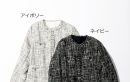 スーツ素材にチュールをレイヤードしたジャケットはオシャレ感度の高いアイテム。これ1枚羽織れば今見えは完璧です。袖の部分や肩にタックを寄せてチュールが際立つように仕上げています。今の時期はTシャツやシアートップスに、冬になったらタートルネックニットとも相性がよく着回し力が抜群です。ジャケットでも自宅でのお手入れが可能です。今シーズン一押しのノーカラージャケットです。