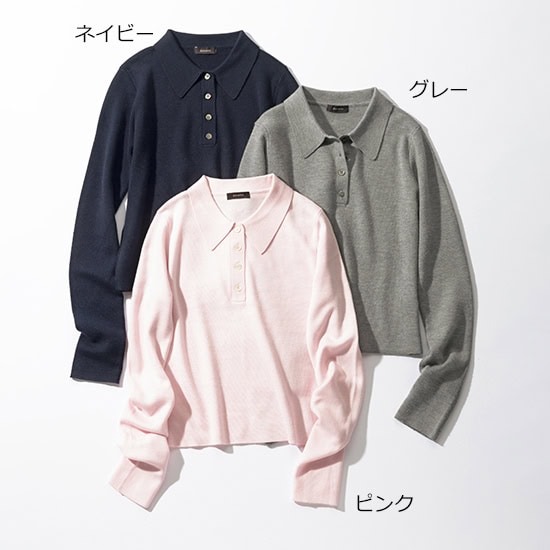②軽い着心地と上品な風合いが魅力。トレンド「ニットポロシャツ」