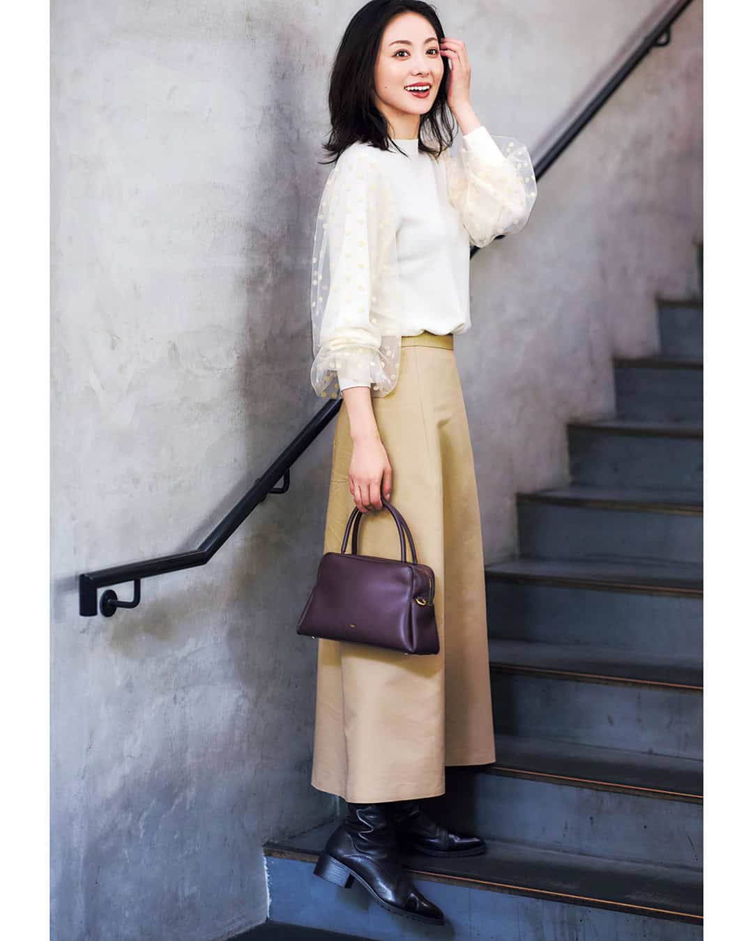 ニット¥12,100(PICCINPERLA)バッグ¥38,500(トーヴ/アンソロジー)シューズ¥62,700(ツル バイ マリコ オイカワ)スカート/スタイリスト私物