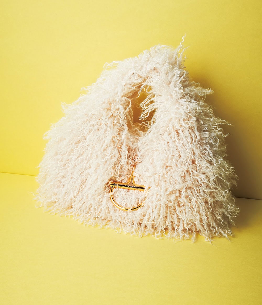 ぬいぐるみのよう。ゴールドのハーフホースビットがポイントに。バッグ「グッチ ソフトビット」〈H22×W50×D16cm〉(グッチ/グッチ クライアントサービス)